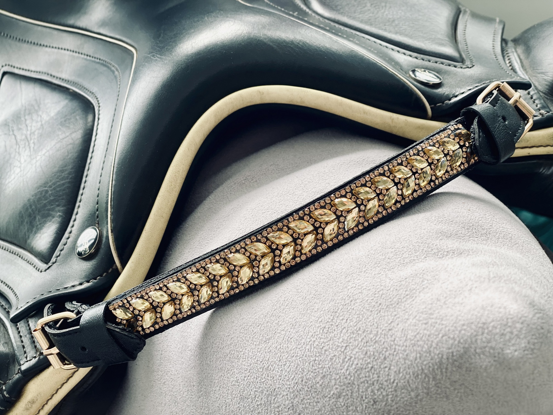 Käsityönä valmistetut kauhukahva-satulakoristeet viimeistelevät tyylin. Yhdistettävissä matchy-matchy setiksi korvahuppujen kanssa.
